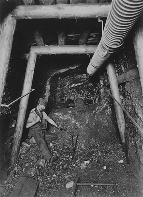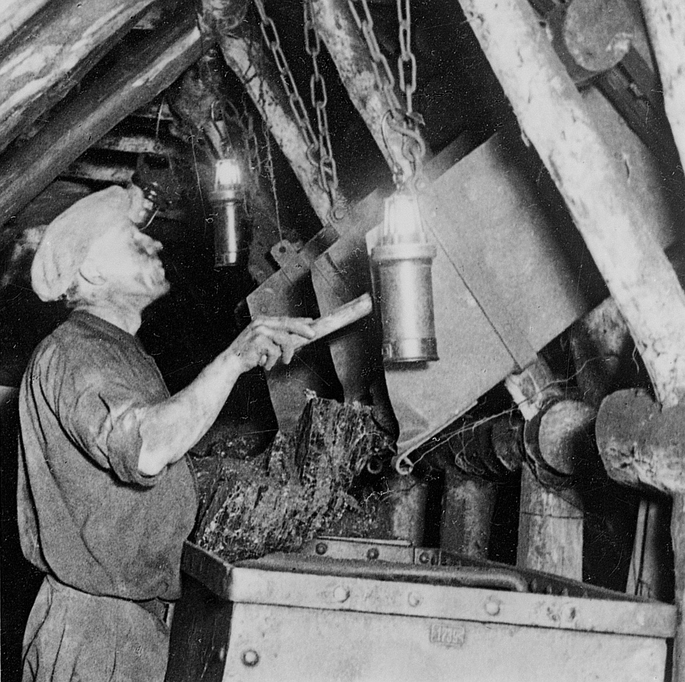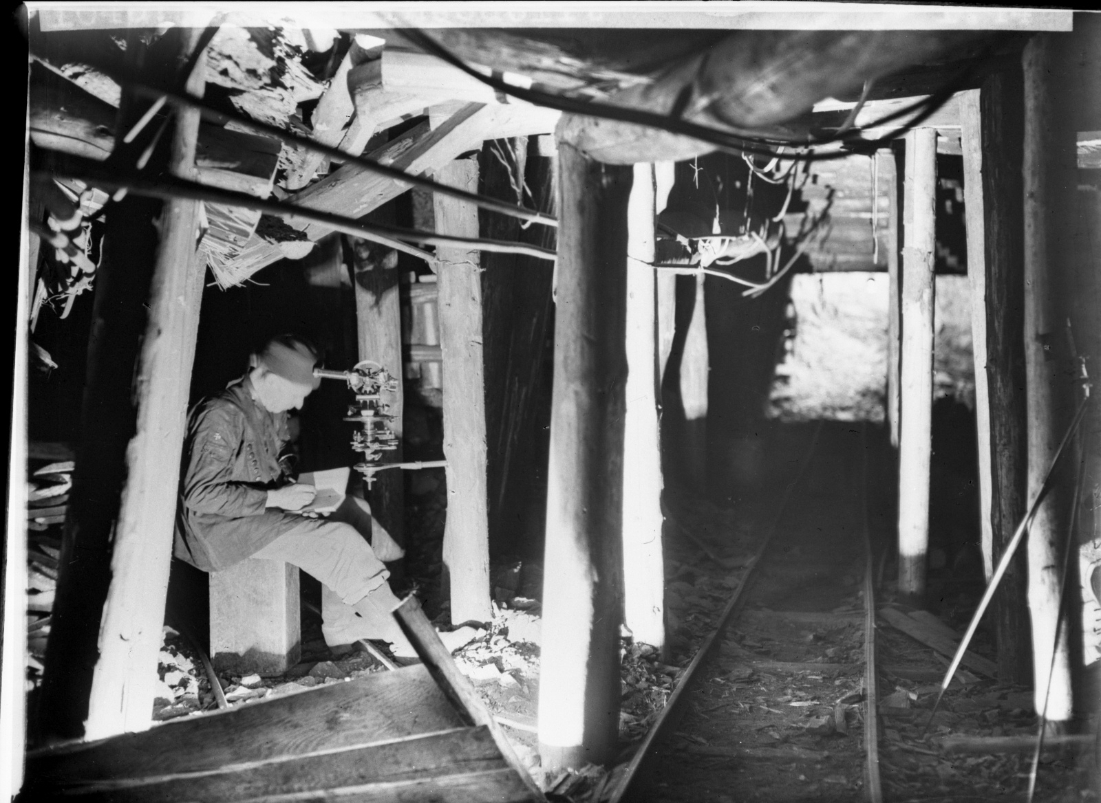Ein Markscheider bei seiner Arbeit im Carola Schacht in Freital, Foto aus dem Nachlaß von P. Schulz, undatiert