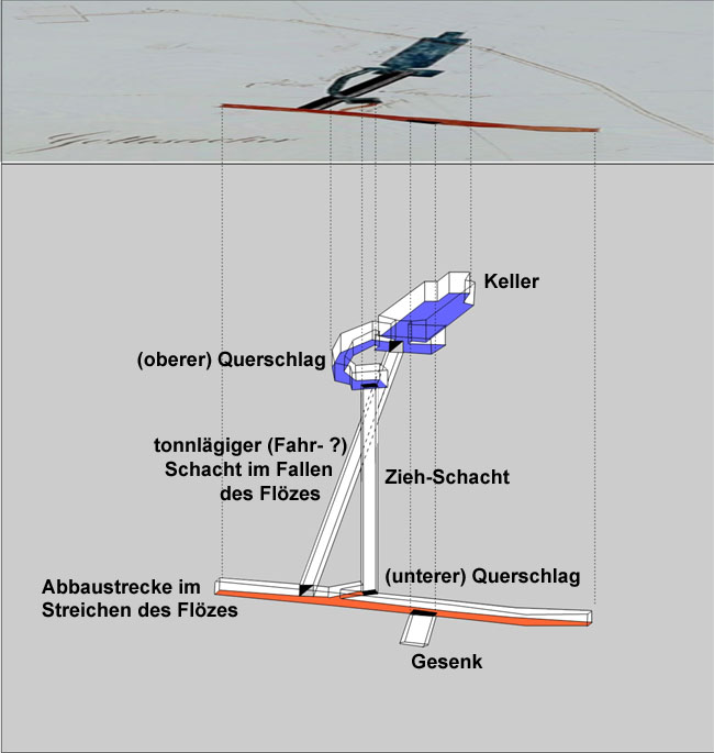 Die nächste Information über den Steinkohlenbauverein liegt aus dem Jahre 1847 vor. Am 16. November wurde ein Lieferschein des Bruchbesitzer Heinrich Ernst aus Dittersbach ausgefertigt, der Quader zum Steinkohlenschachtbau geliefert hatte. Anm.: Inwieweit diese Lieferungen für die Mauerung der Schachtröhre des Saigerschachtes verwandt worden ist oder ob sie im Zusammenhang mit der im gleichen Jahr erfolgten Antragstellung des Mühlenbesitzer Ferdinand Neubert, im Namen des Steinkohlenbau Vereins, zum Bau eines Dampfmaschinengebäudes unterhalb des Gottesackers auf freiem Platz erfolgte, ist nicht bekannt. Fakt ist, daß die zwei übereinander liegenden Keller und die Schachtröhre des nachfolgend beschriebenen Kohlenwerkes bis zu einer Teufe von 5,7 Lachter (= 11,3 m) in Bruchsteinmauerung ausgeführt waren. Der heutige Besitzer des Grundstückes, Herr Manfred Bösenberg, berichtete von einer Gelegenheit, den unter dem eigentlichen Keller liegenden Gewölberaum aufzusuchen, von dem er vermutet, daß es sich um die Rasenbank des Schachtes handele. Er konnte eine feine, exakt gearbeitete Bruchsteinmauerung feststellen.