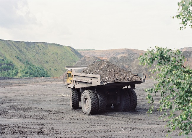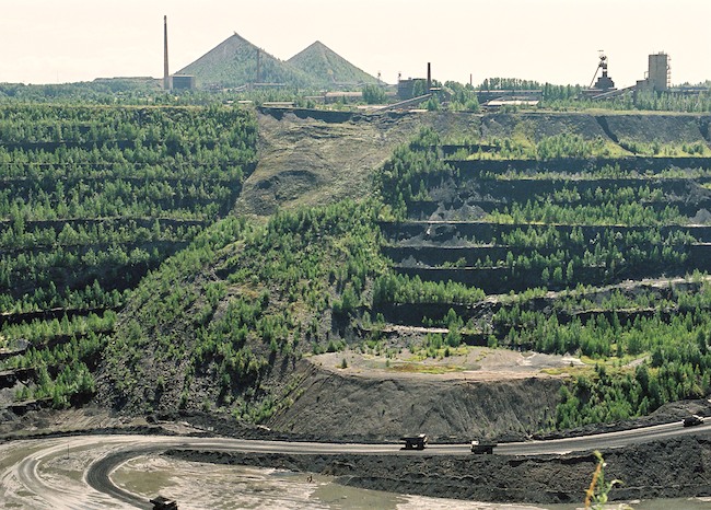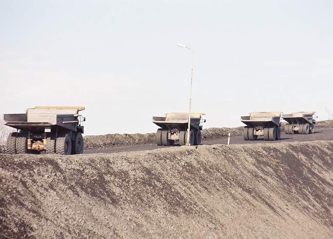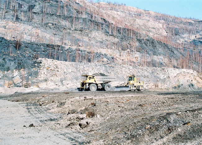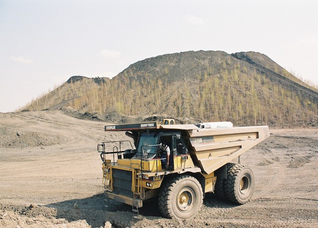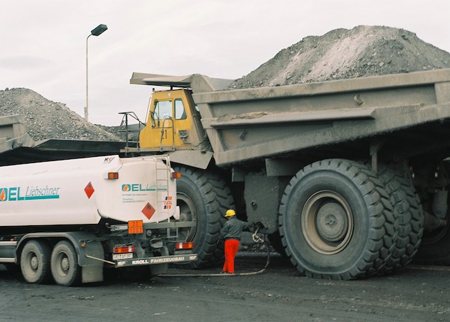 ![]() Ein 136 t Kipper vor der Haldenkulisse. Bild: Sammlung H.A.W. |
