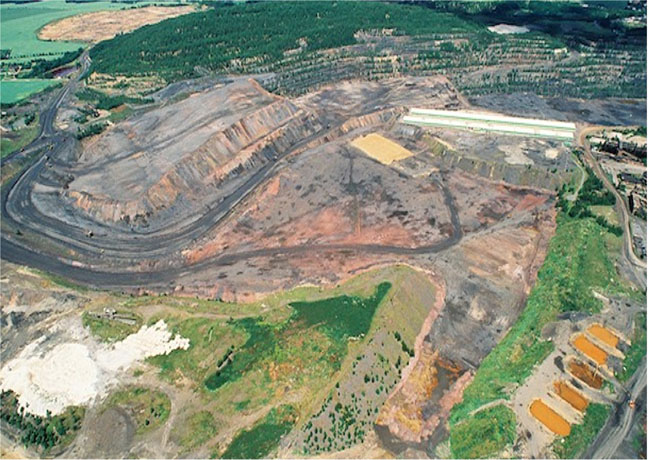 ![]() Hier der vorgelagerte Teil an den Halden ist schon für die Caterpillar-Kipper vorbereitet worden. Bild: Sammlung H.A.W. |