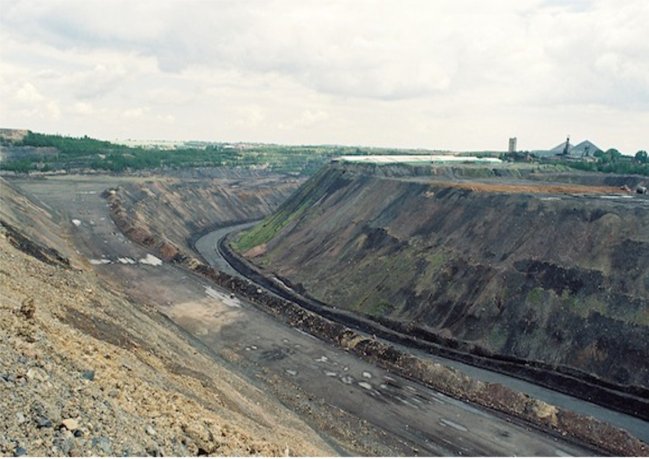 ![]() Blick vom Besucherbalkon in den Tagebau. Bildquelle: Sammlung H. A. W. |