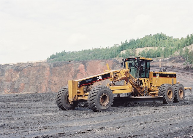 ![]() Links der Radlader Caterpillar 994 mit 932 KW Antriebsleistung, 36 t Nutzlast und einem Leergewicht von 177 t. Allein ein Reifen dieses Fahrzeuges wog ohne Felge 5,6 t (!) und hatte ein Volumen von 7,75 m³ das mittels Stickstofffüllung von 6 bar ausgefüllt wurde. Bild: Sammlung H.A.W. |