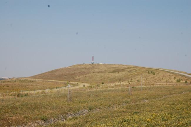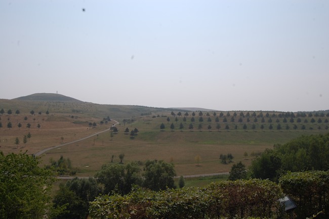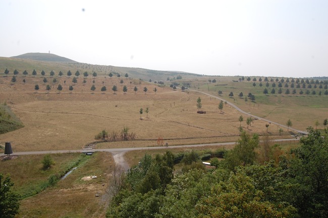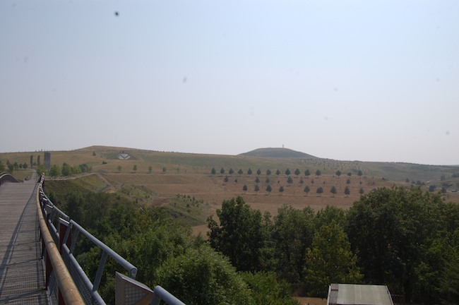 ![]() Der verfüllte Tagebaubereich heute. Im Hintergrund links der neu entstandene Berg mit einem Aussichtsturm. |