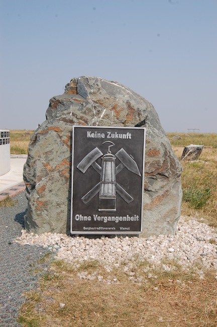 Man kann gut nachvollziehen, daß die Bewohner der Regionen, die vom intensiven Abbau der Uranerze betroffen waren, die Hinterlassenschaften des Bergbaus als Schandmale und schmutzige Narben empfanden. Sie sollten weg! Vielleicht hätte man dabei aber auch - wie man es z. B. in Freital ja auch getan hat - eines der Fördergerüste in der neuen Landschaft lassen (oder an einen geeigneten Standort umsetzen) können, um ein authentischeres Zeugnis dieser 40 Jahre Bergbau zu erhalten. Die Nachfahren werden jedenfalls mit diesem buntbemalten Bauwerk nichts anzufangen wissen... Glück Auf! L. M. Letzte Aktualisierung Februar 2016.