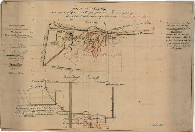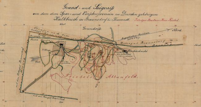 Das Kalkwerk im südöstlichen Teil des Lagers war 1851 im Besitz von Carl Ernst Faust. Über die Familie Faust haben wir noch nicht viel herausbekommen können, zumal der Name auch im Staatsarchiv mehrfach auftritt und Namensgleichheiten nicht so einfach auszuschließen sind. Im Bestand der Grundherrschaft Rothschönberg (10527, Nr. 241) taucht jedenfalls ein Hans Georg Faust als Käufer eines Fünfviertelhufengutes im benachbarten Helbigsdorf 1747 auf. Einige Jahre später wird er als Gärtner in Helbigsdorf bezeichnet, ist aber verschuldet und seine Gartennahrung wird versteigert (10642, Grundherrschaft Weisstropp, Nr. 069 und Nr. 165). Die Familie scheint aber in Helbigsdorf ansässig geblieben zu sein, denn ein Johann Georg Faust in Helbigsdorf wird 1780 in einer weiteren Akte des Bestands 10642 (Nr. 145) genannt. Der Name Carl Ernst Faust in Helbigsdorf tritt erstmals 1844 in Erscheinung, als Parzellen seines Eineinviertelhufengutes verkauft wurden (10527, Nr. 016). Zur gleichen Zeit kauft auch ein Johann Gottlieb Faust in Helbigsdorf Parzellen des Erblehngerichtes (10642, Nr. 186). Herr Faust betrieb den Kalkabbau offenbar mit großer Intensität. Neben dem Tagebau im Bereich des Lagerausstrichs auf der Talschulter legte auch er einen Stolln aus dem Triebischtal heraus an und errichtete zwei Brennöfen. Eine Akte, die im Jahre 1857 ergangen ist (40024-12, Nr. 020), lehrt uns weiterhin, daß zu diesem Zeitpunkt die Schulgemeinde zu Blankenstein bei der Kgl. Schulinspektion um Erlaubnis zur Veräußerung des unter dem Schulgrundstück befindlichen Kalksteinlagers anfragte: „Zum Schullehn in Blankenstein gehört der Garten, Flurbuch Nr. 49a, welcher nach Mitternacht (Norden) mit Herrn J. A. Hahn’s, nach Mittag (Süden) mit Herrn C. E. Faust’s Grundstücken, nach Abend mit der Schule und nach Morgen mit dem Dorfanger gränzt. Unter diesem Garten liegt, wie vorlängst und noch in den Jahren 1851 und 1852 durch eine beim Kgl. Gerichtsamte Wilsdruff anhängig gewesene Erörterung über die unterirdische Grenze des Schulgartens nach Hahn’s Kalkbruche zu, constatiert wurde, ein sehr bauwürdiger Kalkstein. Es wäre unverantwortlich, diesen unterirdischen Besitz länger unausgebeutet im Schoße der Erde ruhen zu lassen, zumal sich einerseits durch die Kauflust der beiden unterirdischen Grenznachbarn Faust und Hahn zu seiner guten Verwerthung günstige Gelegenheit bietet und andererseits die Baufälligkeit der zum Schullehn gehörenden Gebäude die Erlangung eines Baukapitals in nicht zu großer Ferne recht wünschenswert machen dürfte. Aus diesem Grunde erlaubt sich daher die Schulgemeinde den Verkauf des unter dem oben erwähnten Schulgarten unterirdisch liegenden Kalksteinlagers zu beantragen…“ Der Schulleiter war offenbar nicht dumm und versuchte, sich eröffnende Geldquellen zu nutzen, um sein Schulhaus auf Vordermann bringen zu lassen. Schon damals aber arbeiteten die Behörden ziemlich langsam, zumal zu dieser Zeit bergrechtliches und grundherrschaftliches Besitzrecht noch unzureichend voneinander abgegrenzt und miteinander verquickt war. So wanderte diese Anfrage bis vor das Kgl. Sächs. Ministerium für Kultus weiter. Die muß sie am Ende doch positiv beschieden haben, denn um 1850 begann der damalige Guts- und Brauschänkenbesitzers Johann Adolph Hahn tatsächlich mit dem Abbau (40010, Nr. 2577). Da aufgrund des Einfallens des Lagers in östliche Richtung die Abraummächtigkeit bereits bei rund 25 m lag, konnte Hahn dabei nur untertägig abbauen. Sein Förderschacht erreicht zirka 34 m Teufe. Bis zum Jahr 1858 ist nachweisbar, daß auch dieser östlichste Lagerstättenteil parallel durch das Kalkwerk des Herrn Hahn abgebaut wurde. In der Folge kam es aber zu einem Rechtsstreit zwischen dem Schullehn und Herrn Hahn um die Zahlung des „Kalksteinabfindungs-Quantums“. Für Streitigkeiten sorgte insbesondere Hahn's intensiver Abbau unter Tage, der auch nicht an den Grundstücksgrenzen halt machte. Zudem bestand die Sorge der Nachbarn, daß der Grundwasserspiegel sinken und anliegende Brunnen trocken fallen könnten. Deshalb mußte sich das Bergamt in Freiberg auf Veranlassung des zuständigen Gerichtes in Rothschönberg mit der Sache befassen. Dabei wurde festgestellt, daß Hahn das Schulgrundstück bereits auf zirka 150 m² und das seines Nachbarn Philipp auf zirka 100 m² unterminiert hatte. Ihm wurde ein Bußgeld von zweihundertfünfzig Talern auferlegt, mit dessen Bezahlung er sich jedoch ausgiebig Zeit ließ. |