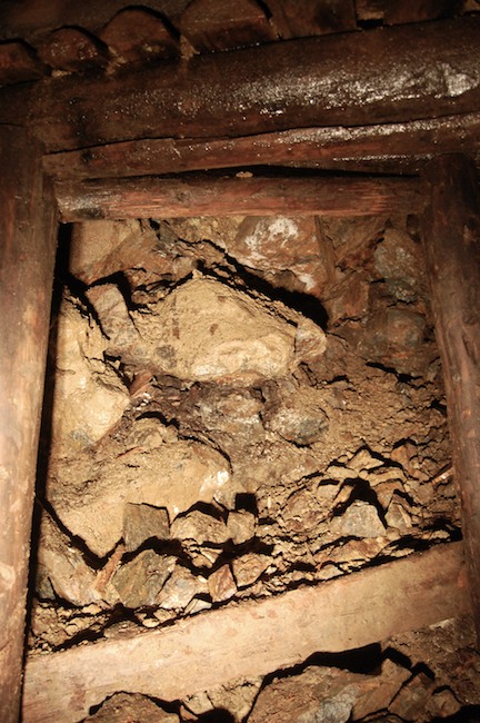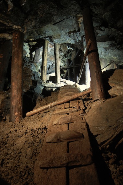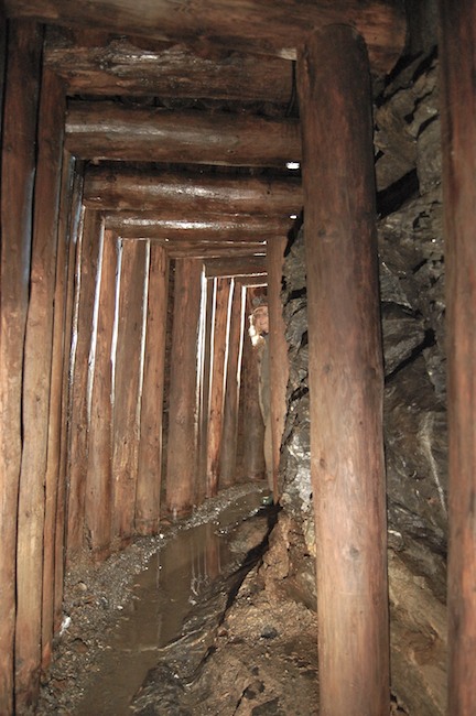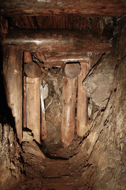 Die Grubenbaue wurden bis zur industriellen Revolution durch einen Grubenausbau aus Holz abgesichert. Dies bewirkte einen hohen Holzverbrauch, so daß die Gruben häufig mit den Hüttenwerken um Holz konkurrierten. Das grundlegende Bauelement eines Grubenausbaus aus Holz ist der Türstock, der wiederum aus einem Rahmen aus zwei Stempeln bzw. Stützen und einem Querbalken, der sogenannten Kappe, besteht. Der Bereich über dem Profil des Grubenausbaus wurde mit Holz angelegt und häufig mit taubem Gestein gefüllt. Stempel und Kappen wurden auf unterschiedliche Weise miteinander verbunden, je nachdem, ob ein seitlicher oder ein vertikaler Gebirgsdruck vorherrschte. An Stellen mit geringer Stabilität des Gebirgsbmassivs in Bereichen tektonischer Störungen oder in Abbrüchen oder an Stellen, die durch eine vorhergehende bergmännische Tätigkeit beeinträchtigt waren, wurden die Türstöcke im „Blockhausstil“, also im Grunde unmittelbar hintereinander gebaut, in etwa so, wie wir dies im mittleren Abschnitt des Johannes-Stollens sehen können, wo der Stollen durch ein Bruchfeld oberflächennaher Abbaue verläuft, durch die der Skarnkörper im austreichenden Teil abgebaut wurde. Bei einer fortgeschritteneren Weiterentwicklung des Abbaus in den Kammern wurde das Holz nicht nur zum Grubenausbau verwendet, sondern auch zum Ausbau der Abbrüche, denn der Erzabbau wurde in mehreren hohen Niveaus entsprechend der entwickelten Vererzung durchgeführt. Der Grubenausbau mußte häufig repariert werden, denn nachdem ein abgebauter Abschnitt zurückgelassen wurde, setzte dort Fäulnis ein, so daß die betreffenden Grubenbereiche an oberflächennahen Stellen oder an Stellen, wo sich großräumige Kammern in instabilen Gesteinen befanden, nach einiger Zeit einbrachen. Die Schächte und Zugangsstollen, die zum Transport der abgebauten Erze und zur Entwässerung dienten, waren natürlich überlebenswichtig für das Bergwerk und wurden deshalb langfristig in einem guten technischen Zustand gehalten.