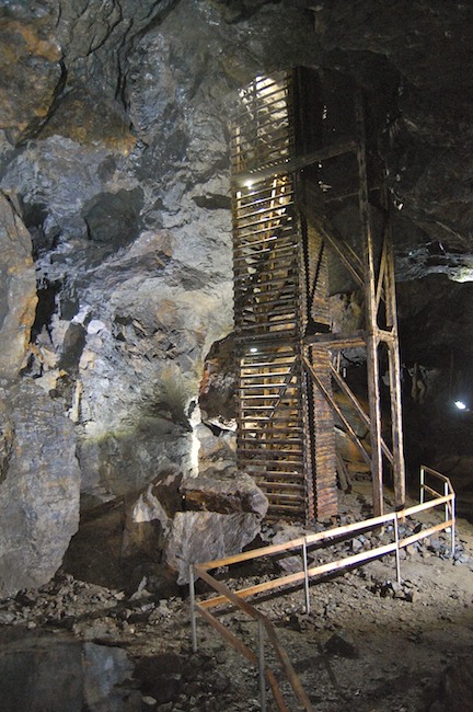 Über den Ziehschacht nach Übertage... ... und durch das Bergbaugelände von Johannes Stolln und Kohlreuther Stolln.