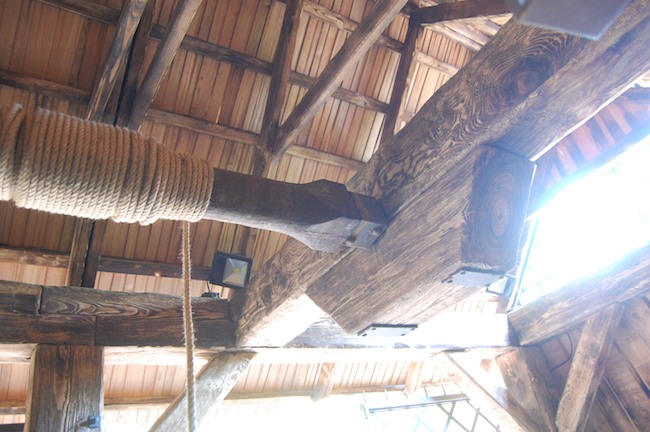 Die Erze wurden in Kübeln, geflochtenen Körben oder Laufkarren aus den einzelnen Strecken heraustransportiert. Danach wurden sie in Kübeln ans Tageslicht gehievt, wo sie dann weiter getrennt und verarbeitet wurden. Nach Zugänglichmachung der Lagerstätte durch einen Stollen wurden zum Erztransport Holzwagen, die Hunte, verwendet, die auf Bohlen bewegt wurden. Die Erze wurden mithilfe von Handhaspeln nach Übertage gefördert. An der Wende vom 13. zum 14. Jahrhundert entwickelten sich die handbetriebenen Haspeln zu Göpeln weiter, die zunächst von Menschen- oder Pferdekraft und später dort, wo dies möglich war, von Wasserrädern angetrieben wurden. Für die Bedienung einer Handhaspel waren 2 bis 4 Männer erforderlich, zum Antrieb eines Pferdegöpels je nach Größe 2 bis 4 Pferde. Die Haspelförderung reichte bis in eine Tiefe von maximal 60 m, mit einem Pferdegöpel konnte Material bis zu einer Tiefe von 200 m gefördert werden. Die von Wasserrädern angetriebenen Göpel ermöglichten sogar einen Abbau bis in eine Tiefe von 600 m. Haspeln wurden bis zum Ende des 16. Jahrhunderts verwendet. Mit zunehmender Konzentrierung des Abbaus in größere Grubenbetriebe griff man immer seltener auf handbetriebene Technik zurück, für den Abbau kamen dann bis zur Benutzung der Dampfmaschine im 19. Jahrhundert Pferde- oder Wassergöpel zum Einsatz. Am Schacht der Grube Johannes wurde eine funktionstüchtige Replik eines Handgöpels ausgestellt, der im Rahmen des übertägigen Besichtigungsteils zu sehen ist. |