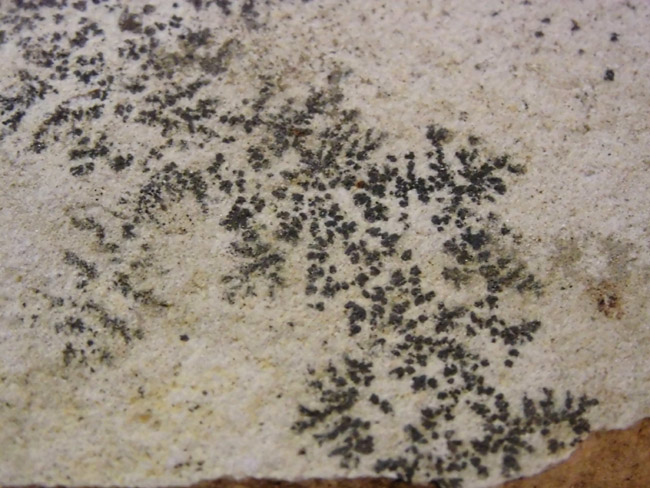 ...mit hübschen Dendriten darauf, die ebenfalls von den Lösungsvorgängen im Gestein zeugen. |