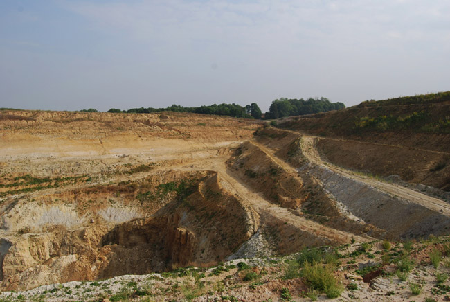 ![]() Wieder nach oben: Am Nordoststoß des Tagebaus sieht man hier die in Richtung Pulsitz zunehmende Lößmächtigkeit. Im Löß finden sich hier übrigens Muschelhorizonte, für die sich auch die Quartär-Paläontologen interessieren. |