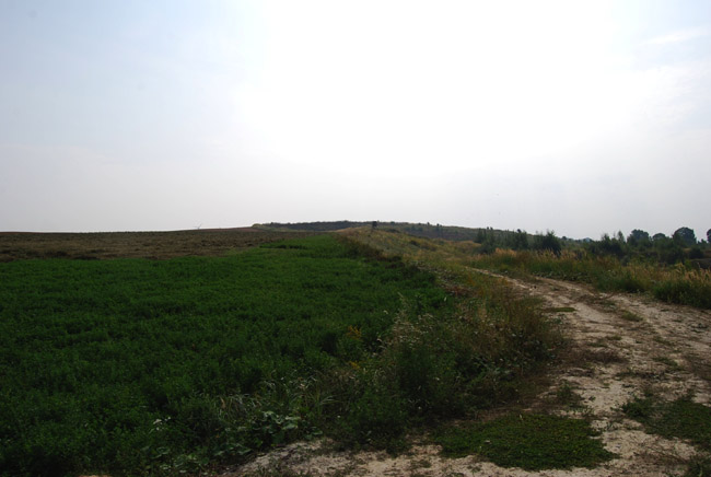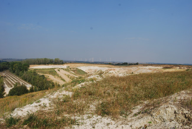 ![]() In Richtung des Eichberges (die Kuppe am Horizont) liegt saniertes Gelände, daß bereits an die Landwirtschaft zurückgegeben wurde und das sich schon nach wenigen Jahren nicht mehr von anderen Anbauflächen unterscheiden läßt. |
