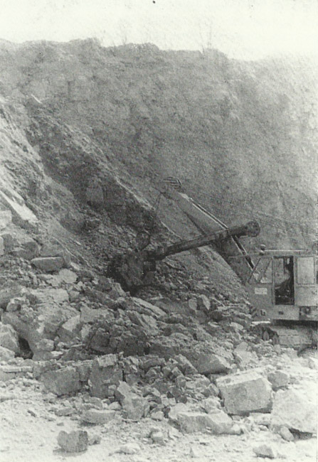 ![]() Ein UB 80 mit Hochlöffel im Tagebau Pulsitz. Bildquelle: 40 Jahre VEB Ostrauer Kalkwerke, 1988.