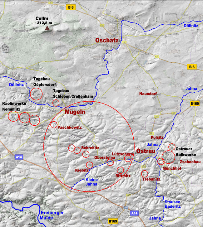 Wir setzen unseren Bericht nun mit den Kalkwerken zwischen der Kleinen Jahna im Süden und dem Tal der Döllnitz bei Mügeln im Norden und mit neuen Exkursionen in die Region fort.