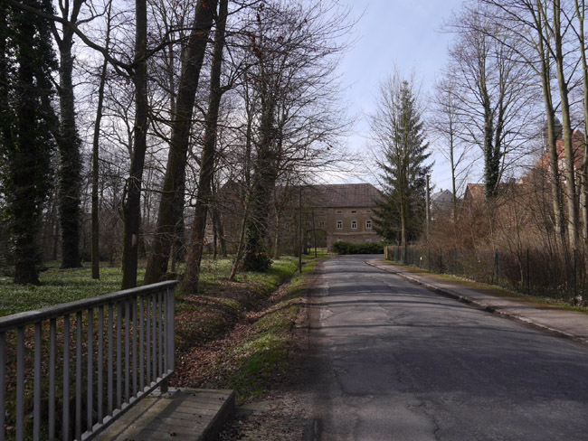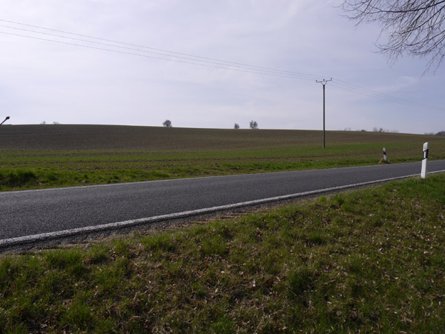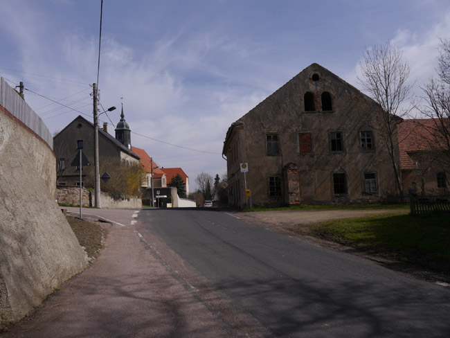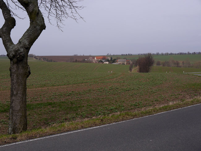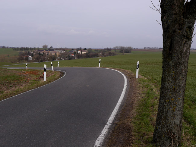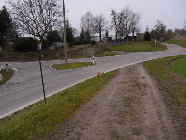 Mügelner Straße biegt dann nach Nordosten ab, während die Landstraße weiter