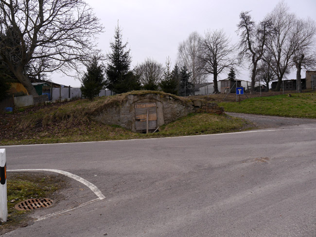 Auch dieser Steinbruch wurde aus dem Talgrund heraus angesetzt. Hier der Blick nach Norden in Richtung des Zugangs zur Bruchsohle und des Gehöftes an der Mügelner Straße... |