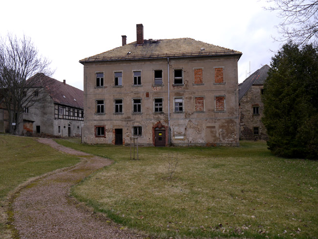 Im Ortskern steht noch das gegenwärtig leider stark vernachlässigte, aber immer noch beeindruckende Gebäudeensemble eines besonders großen Gutshofes. Der Schlußstein über der Vordertür weist leider keine Initialen auf, die dem Ortsfremden eine Zuordnung zu einem der oben genannten Besitzer ermöglichen würden. |