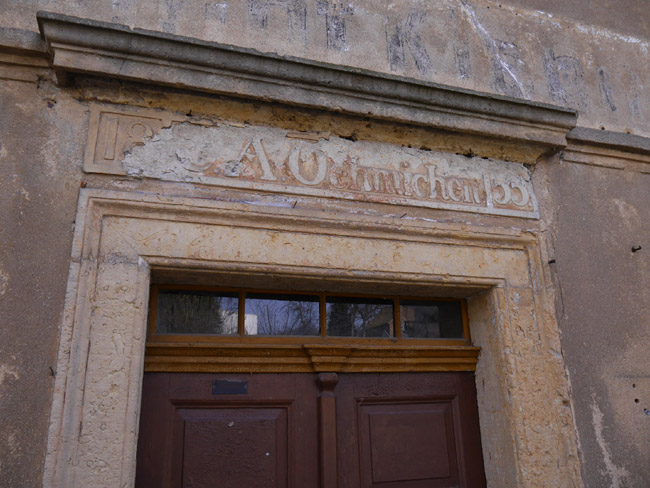 ...von C. A. Oehmichen mit der Jahreszahl 1855 über dem Türsturz. Johann Christian Oehmichen wird 1867 als Kalkwerksbesitzer genannt. |