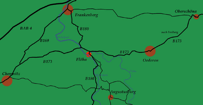 Kleinstadt Flöha liegt am Zusammenfluss von Flöha und Zschopau am Fuße des