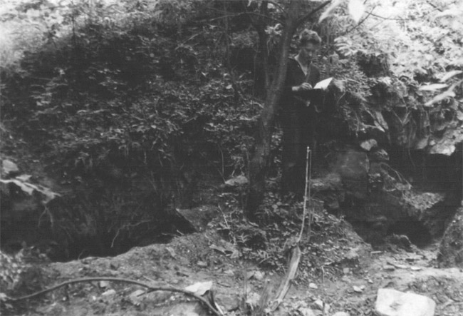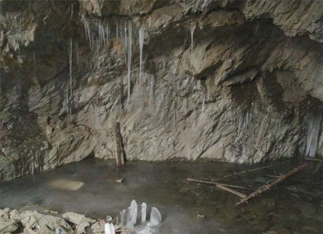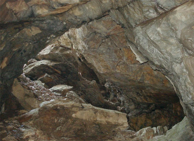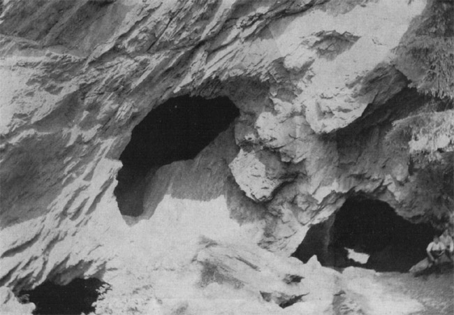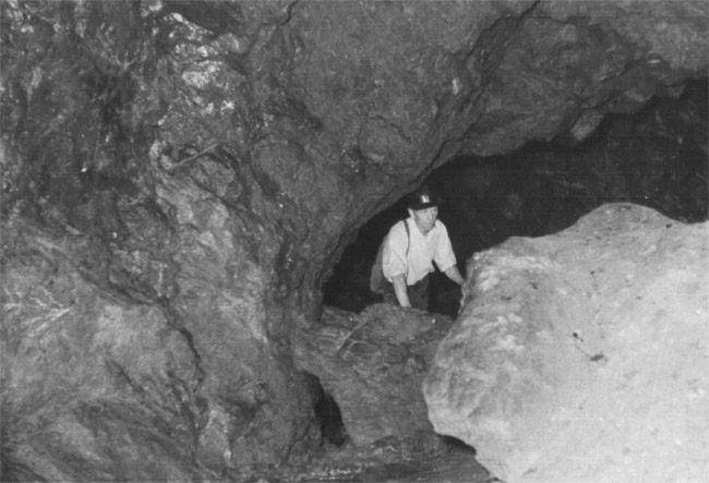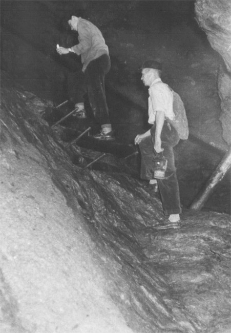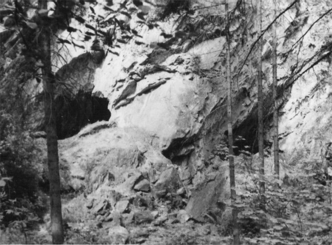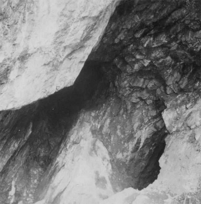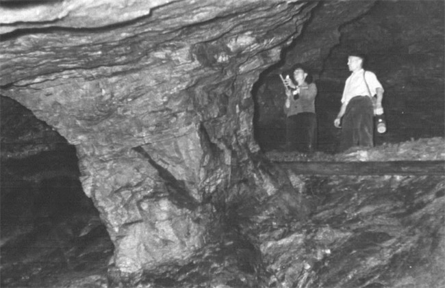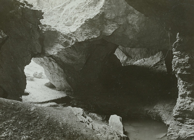 ![]() Undatiertes Foto aus dem Inneren der „Schwedenlöcher“. Der Fotograf ist nicht bekannt. Link zum