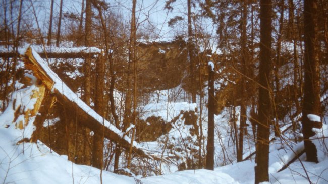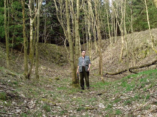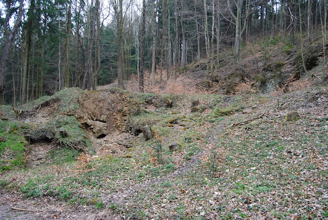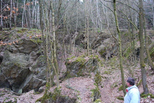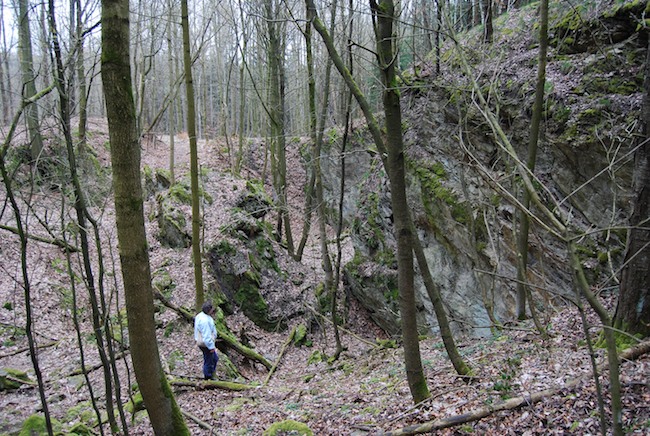 ![]() Blick aus dem Abbau des um 1995 verfüllten Kalkabbaus, aufgenommen 1973. Foto: Helmut Kroh