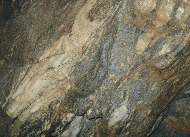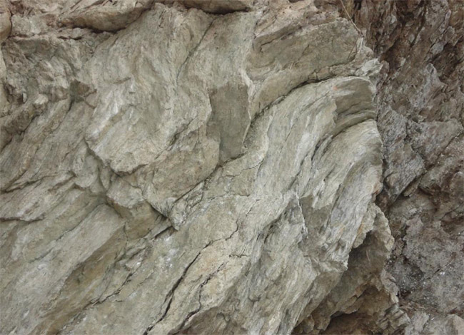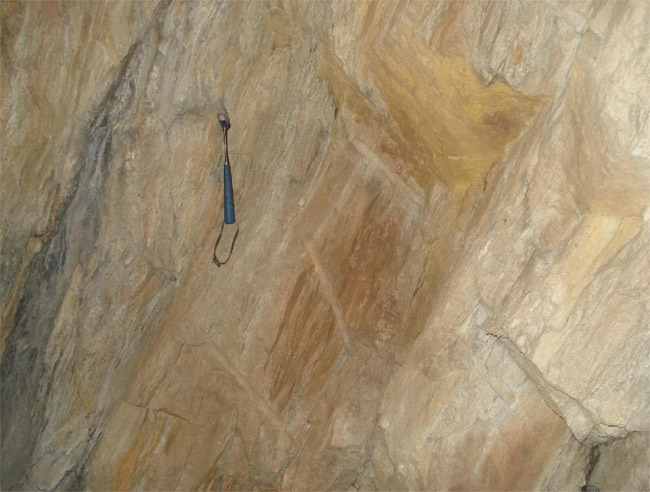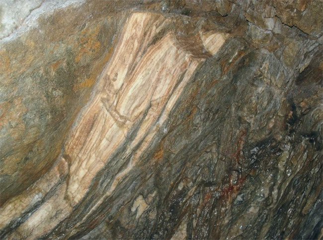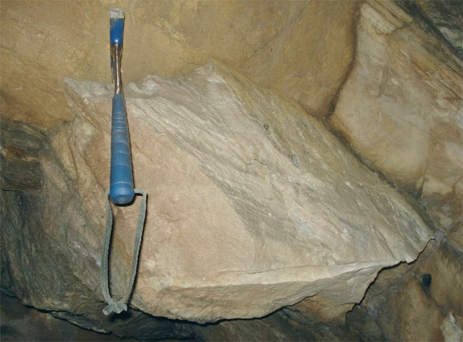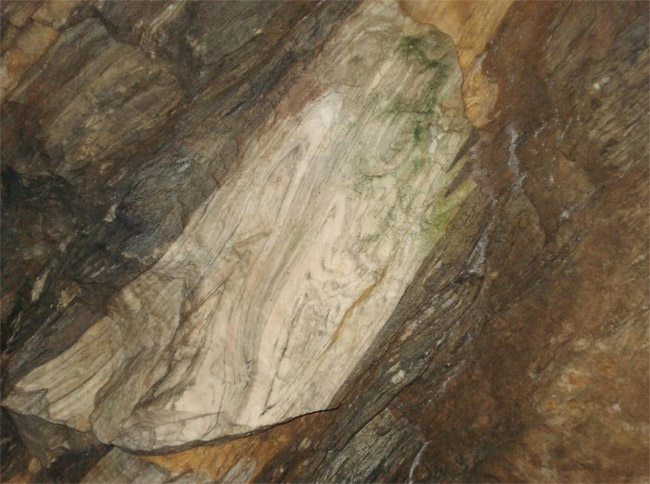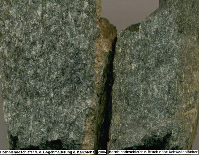 eingelagerten Bänken, Linsen und Schmitzen von feinkristallinem Kalkstein. Diese