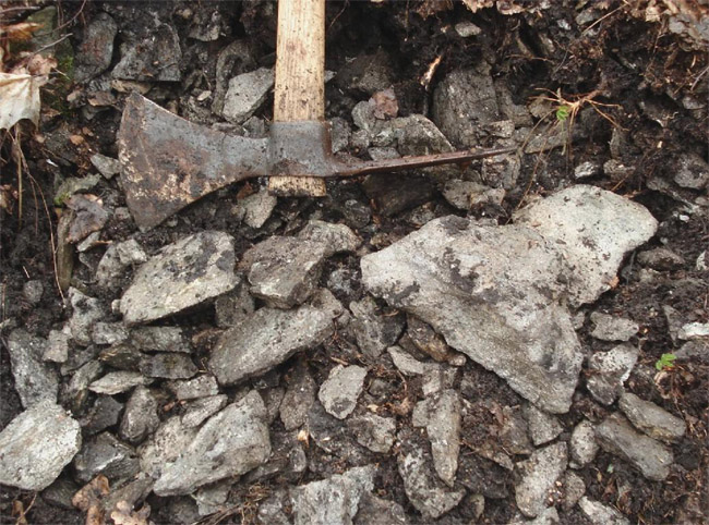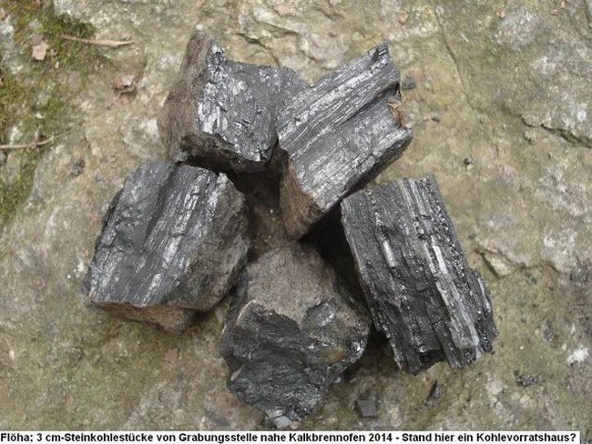 Stückchen minderwertiger Steinkohle an einer Grabungsstelle am Kalkofen an