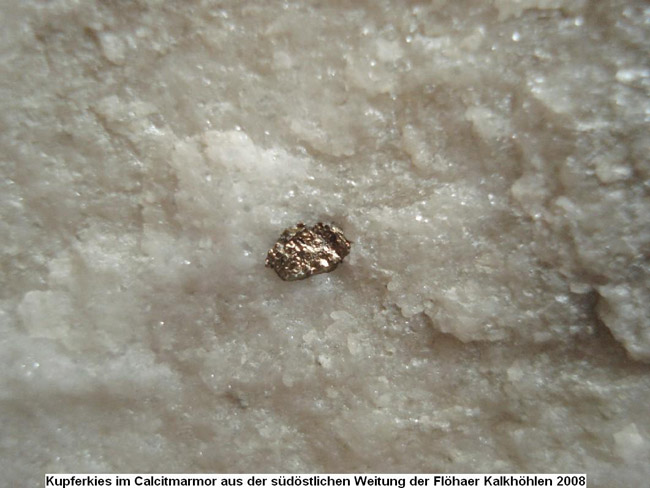 Kalkhöhlen Kalzitmarmor mit eingesprengtem Pyrit- oder Chalkopyrit. Auf