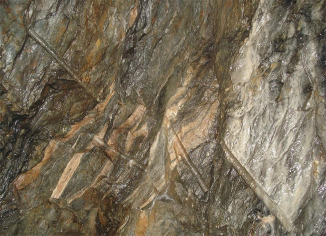 vorwiegend aus Quarzphylliten und weiteren glimmerigen Phylliten. Durchsetzt