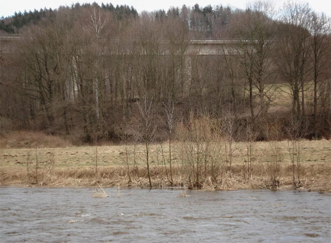 Hier am rechten Berggehänge zur Flöha, zwischen Hetzbach und Brückenneubau lag das Stollnmundloch. Foto: Helmut Kroh