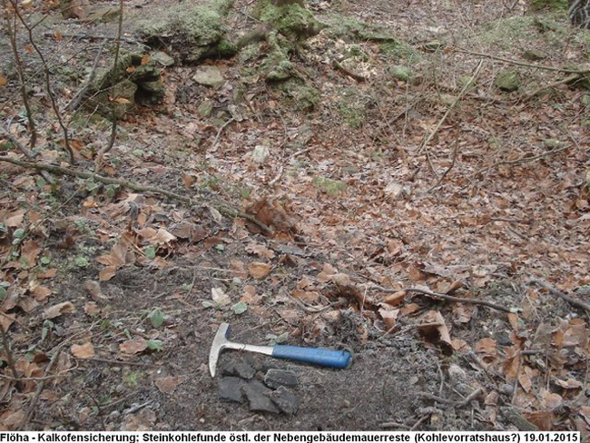 den Schwedenlöchern (Standort Kohlevorratsschuppen?) belegen das Brennen