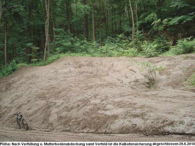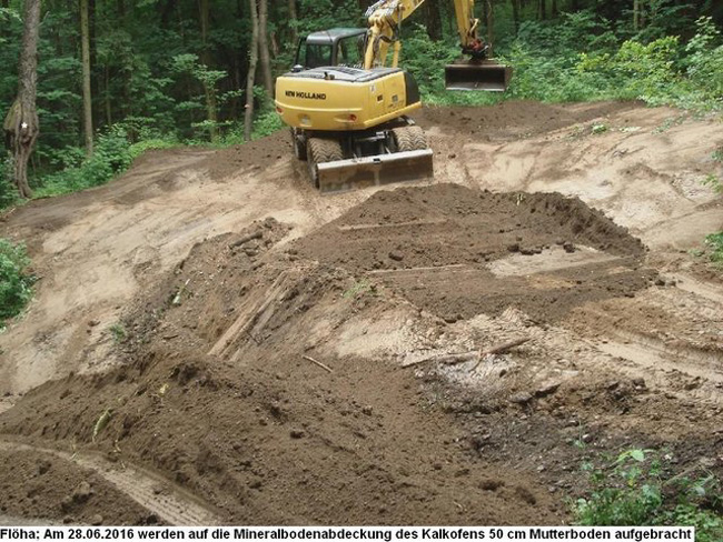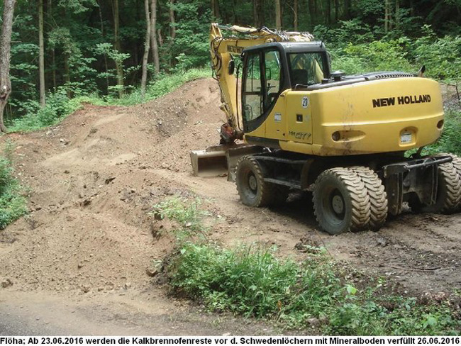 des Kalkofens und eines Stolln vollständig im Laufe des Jahres 2016 verfüllt und
