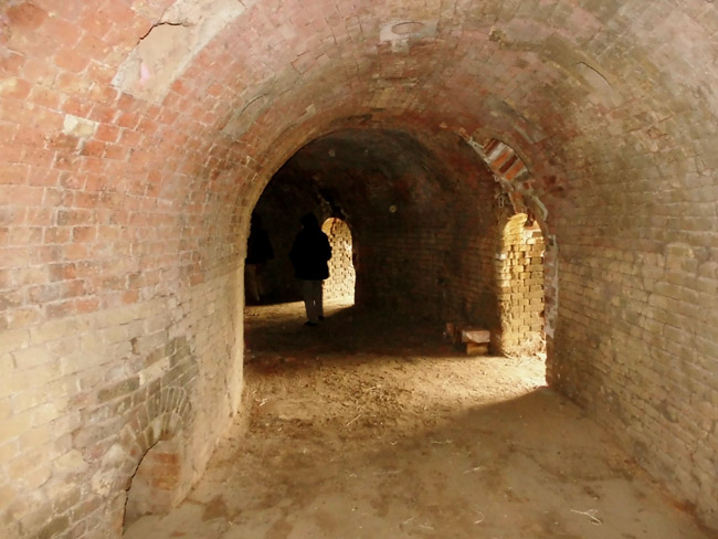 Scheitelhöhe des zylindrischen Tonnengewölbes von ebenfalls etwa 2,5 m.