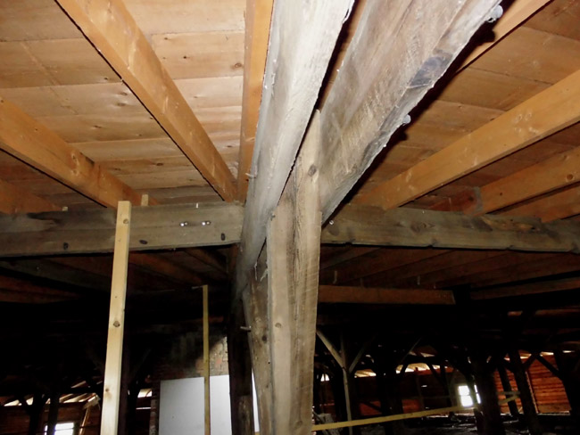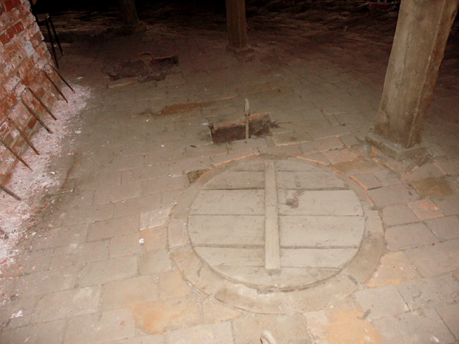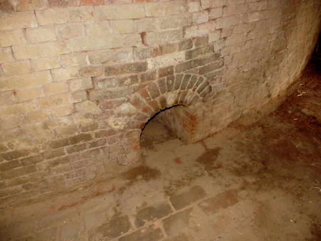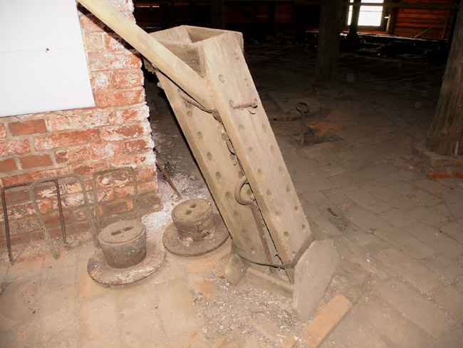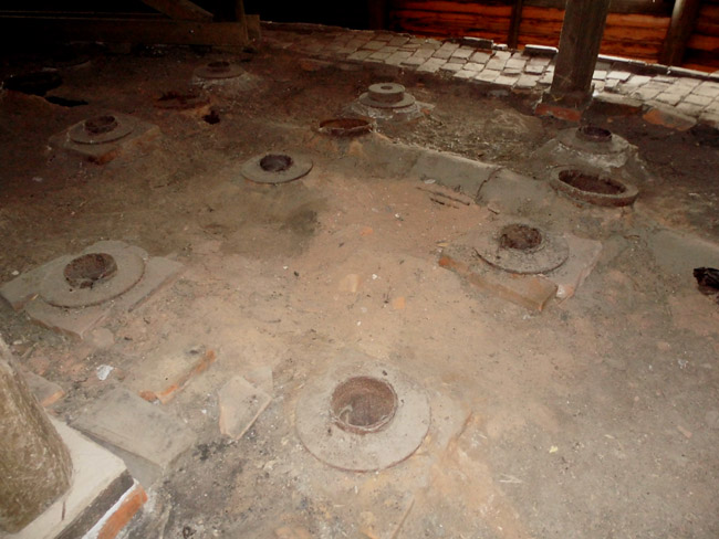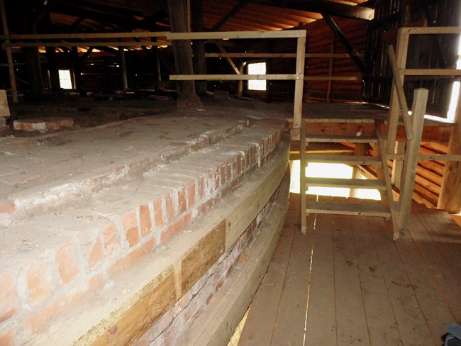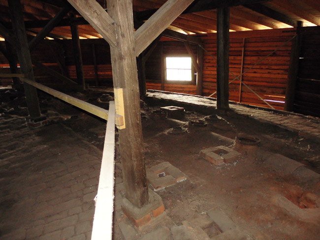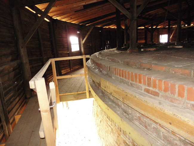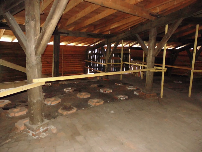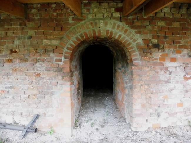 Damit hätten wir eigentlich auch schon das Wichtigste gesehen und wenden uns wieder dem Ausgang zu. Über eine schiefe Ebene hinter dem breiten Tor hat man früher auch den Brennstoff auf die Schürebene hinaufgeschafft. |