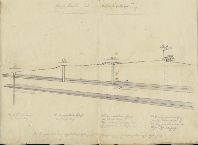 Die hier angenommene Ausdehnung der Flöze nach Norden und deren Mächtigkeitszunahme mit der Teufe ist allerdings völlig hypothetisch. Gäbert selbst schließt sein Gutachten mit den Worten: „Über die Rentabilität des Kohlenbergbaues lassen sich genauere Angaben erst nach erfolgten Bohrungen machen. Maßgebend sind hierfür u. a. die Kosten der Erwerbung des Unterirdischen sowie die Wasserverhältnisse der Schächte, die Beschaffenheit der Kohle und der für dieselbe zu erzielende Verkaufspreis. Über diese, den Geologen nicht speziell berührende Fragen würde sich wohl Herr Bergingenieur Landgraf äußern.“ Im Übrigen enthält das Gutachten mangels neuer Aufschlüsse im Wesentlichen nur das Bekannte und oben schon Gesagte. Die stark verblichenen Beschriftungen auf dem Schnitt lauten: