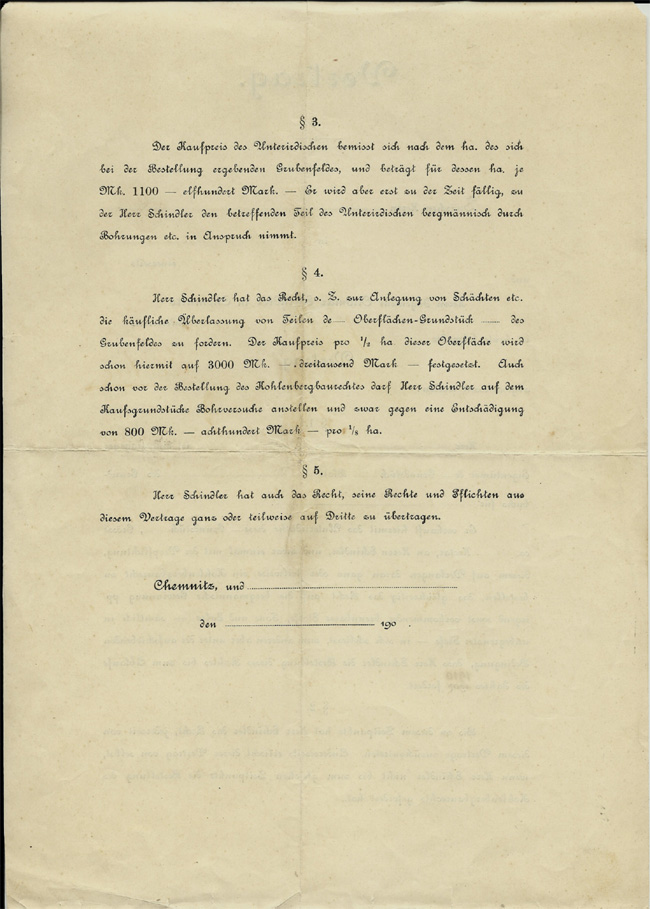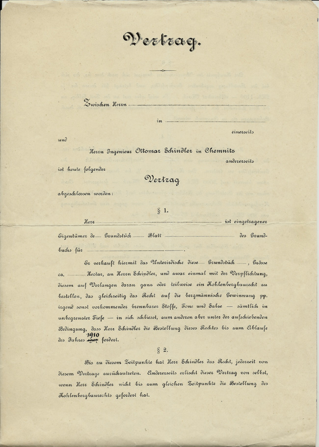 ![]() Rückseite des noch unbenutzten Vordruckes für einen Verkaufsvertrag über Kohlenbaurechte in Flöha an Herrn Ingenieur Ottomar Schindler. Zur Verfügung gestellt von Flöhaer Heimatfreunden.