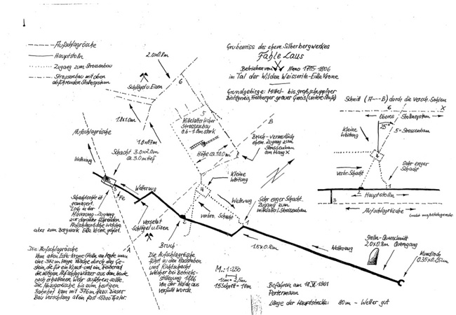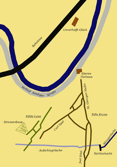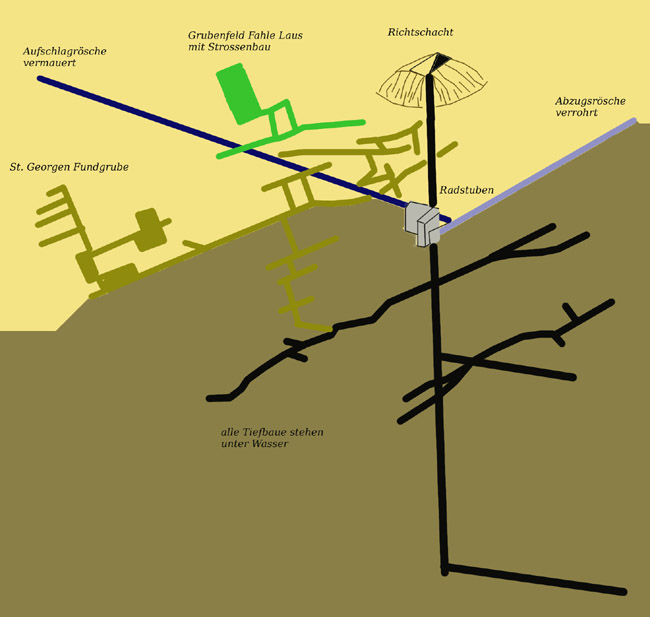 Die Fahle Laus Es handelt sich hierbei um eine separate Grube, welche über einen Stolln verfügte, dessen Mundloch heute vermauert ist. Im Bereich von mehreren, sich teilweise kreuzenden Gangtrümern sowie parallel dazu verlaufenden Trümern sind von der Tagesoberfläche her Strossenbaue in sehr alter Zeit angelegt worden. Einige dieser tagesnahen Baue sind zum Teil noch fahrbar.