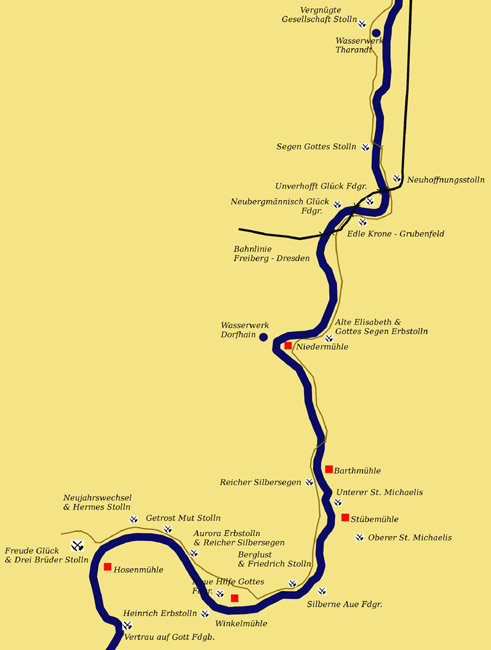 Kroner Stollns lag an dem später gebauten Weißeritzwehr. Der Stolln selbst