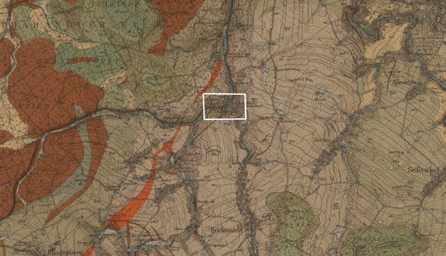 Krone befindet sich eine Störung mit Quarzporphyr. Dieser wird auch als „Dorfhainer