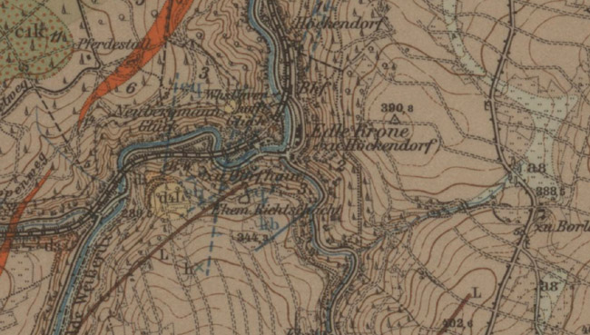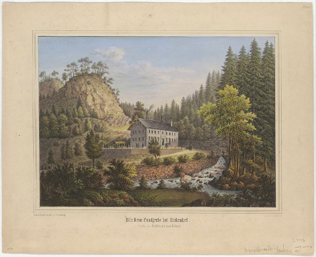 Noch im Mittelalter ist auch die Gegend von Tharandt fündig geworden, wie doch schon 1485 Mathes Smeltzern für sein Bergwerk auf dem Ziegenrück an der Triebisch Münzfreihung erteilt (HSA Loc.4491, Versch. uber bergwerck). Sind wir somit, wenn auch nur lückenhaft, über den mittelalterlichen und frühneuzeitlichen Bergbau der zur Behandlung stehenden Gegend unterrichtet. So fehlen uns schriftliche Unterlagen für einen solchen in Höckendorf, wo der Sage nach der Bergsegen am reichsten war. 1851 suchte die Grube „Edle Krone“ nach alten Akten (OBA 11767). Das Bergamt Altenberg konnte zwar 259 verschiedene Akten, Register und Risse aufweisen, aber nicht vor 1544 (Es handelt sich dabei wohl um das so genannte Zwitterstocksarchiv, welches aufgrund der Kriegswirren um 1945 in der alten Zwitterstocksfaktorei untergebracht war und auch dort verbrannt ist – Anm. d. Red.). Leider sind die alten Grubenregister zur Zeit praktisch nicht zugänglich. Sie vermöchten ein Bild der wirtschaftlichen Lage der Gruben zu geben. Die erste heute verwertbare schriftliche Erwähnung findet der Bergbau am „Hockenberg“ 1545 im Glashütter Receßbuch 7, wo die Fundgruben St. Jorgen, St. Johannes, Krone und Kreuz unter dem Schichtmeister Andreas Mehner genannt werden. Erzvorrat war nicht vorhanden. Im nächsten Jahre steht Creuz- Fdgr. in Ausbringen und wieder ein Jahr später die Krone. Als bedeutendste Grube tritt uns St. Georgen (Jorgen) entgegen, die im Quartal Trinitatis 1557 5 Mark, 9 Lot und 3 Quentchen Silber ausbrachte (Receßbuch 9). Da 1565 auch die Krone wieder Erz ausbringt, ist von einer Lücke, die ein Wolkenbruch von 1557 geschaffen hätte, nichts zu merken, aber auch nichts von einem großartigen Reichtum, woran auch die Erwähnung eines Pochwerks 1546 nichts ändern kann. Sicher ist der Bergbau bei Höckendorf älter. Eine Eigenart der dortigen Erzlagerstätten ist nämlich ihre Reichhaltigkeit dicht unter der Oberfläche, während sie nach der Tiefe zu ihren Erzadel bald verlieren. Noch heute lassen die alten Abbaue in der kleinen Schlucht am rechten Hange erkennen, daß hier das Erz zuerst im Tagebau gewonnen werden konnte (Heute nicht mehr sichtbar – Anm. d. Red.). Es muß als ganz ausgeschlossen gelten, daß der Erzgehalt des dortigen Gebirges den Höckendorfer Bauern lange verborgen bleiben konnte, und so zeugen denn zahlreiche von Tage aus verführte Preßbaue, verbrochene Stölln hoch über der Talsohle, Schachtpingen und Halden für einen regen Betrieb vor Anlage der größeren Stölln, die um 1545 schon vorhanden waren. Aber auch Tiefbaue haben schon bestanden. Dafür zeugt ein alter Kunstgraben, der aus dem Höckenbach heute noch bis dorthin reicht, wo der heilige Weg ins Tal führt. Im vorigen Jahrhundert waren auch noch die Reste einer Schmelzhütte und Schlackenhalden wahrnehmbar. Da die Erzgänge plattenförmig das Gneisgebirge durchsetzen, mußten bei ihrem Abbau schluchtförmige Hohlräume entstehen (siehe die Arbeit über Niederpöbel). Während in moderneren Betrieben der Gang durch Stolln oder Schacht oftmals in mehreren Sohlen, aufgeschlossen und dann im „Firstenbau“ von unten nach oben abgebaut wird, wendete man früher auch den Strossenbau an. Die Knappen arbeiteten sich an den reichen Stellen des Ganges von oben nach unten immer tiefer in seine feste Strosse, d.h. seine Sohle, hinein, der Festigkeit der Gneiswände vertrauend, die sich immer zu ihren Seiten erhoben. Zu einem Versetzen der Hohlräume kam es dabei nicht. Bis vor kurzem war ein solcher Abbau zugänglich, der durch zwei enge, unregelmäßige Schächte mit einem alten Stolln in Verbindung steht, der später von den Bergleuten als „Fahle Laus“ bezeichnet wurde... Die Glanzzeit der hiesigen Gruben muß noch in das Mittelalter verlegt werden, nicht nur, weil im 16. Jahrhundert die oberen Teufen schon abgebaut waren, sondern auch, weil die seit 1529 gedruckt herausgegebenen Ausbeutbögen diese Gruben nicht nennen, obwohl die gerade oben erwähnten edlen Erzreste noch im Freiberger Revier lagen, das durch die Wilde Weißeritz vom Glashütter und später Altenberger Revier getrennt wurde. Wohl aber werden um die Zeit des angeblichen Wolkenbruchs die kleinen Gruben bei Pretzschendorf als Ausbeute gebende erwähnt. Vom Jahre 1577 ab liegen ausführliche Angaben (HSA Loc. 36157 IX, Sect. I 2639) über die Höckendorfer Gruben vor. Es wollten in diesem Jahre etliche Leute die Gruben wieder aufnehmen und ein Pochwerk anlegen. Joseph Benno Theler, nunmehriger Oberfischmeister, wies aber auf ein kurfürstliches Verbot der Anlage einer Pochstätte daselbst hin. 1590 hören wir von einer abermaligen Wiederaufnahme der „Chronicka am Heckenberge“. Bergamtmann und Landfischmeister sollen wegen einer Pochwerksanlage die Grube besuchen. Nach zweimaliger Mahnung geben sie einen Bericht ab, in dem es heißt: „ ...die gebeude des Berckwergs davon Zacharias und Christoff die Albrechte ein weitt Leifftig gewesch machen und große grumpen furgebenn, ist es an deme das sie of einen altten voriegenen Stolln, in schwebende Strossen ein wenigk weschbergk (sehr arme Erze d. V.) gewünnen und sich der uncosten gescheuet ann Tagk zu schaffen … Ist auch zubesorgen, das Suplicanten (Gesuchsteller d. V.) des ortts nicht lange bauen konnen, denn es sehr vorbroch und vonn den altten ent Zwey gehauen worden.“ Im Interesse der Fischerei wurde das Pochwerk abgelehnt. Aus einem Gewerkenverzeichnis geht hervor, daß der genannte Albrecht, ein Leipziger, allein 109 Kuxe besaß. 1596 hören wir von neuer Bergbaulust. 1597 liegen Bergamtsakten (OBA 3812, I) über unsere Gruben vor. Es heißt darin, die Gewerken hätten schon 300 Gulden verbaut und wollten ein Kunstrad für 75 Gulden vom Kunststeiger Mittelbach bauen lassen. Es wird darum von den Beamten der Holzverkauf aus den Amtswäldern empfohlen. Ein Wolkenbruch wird an keiner Stelle erwähnt. Erst 1664 heißt es in einem Briefe des Bergmeisters: „ … solches Uhr alte