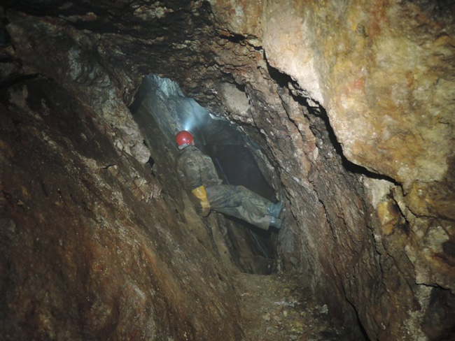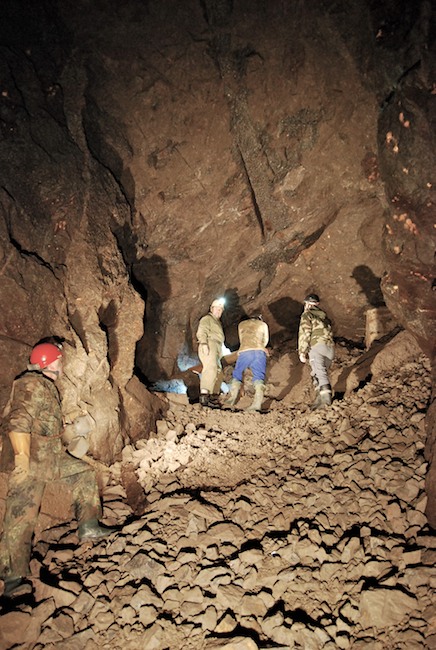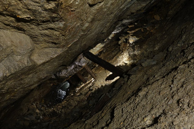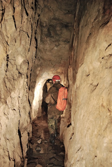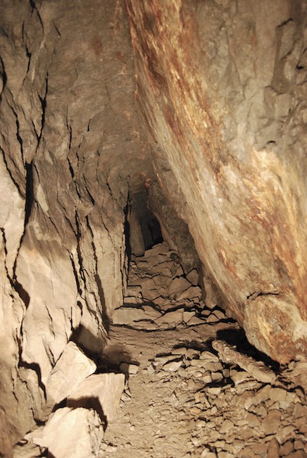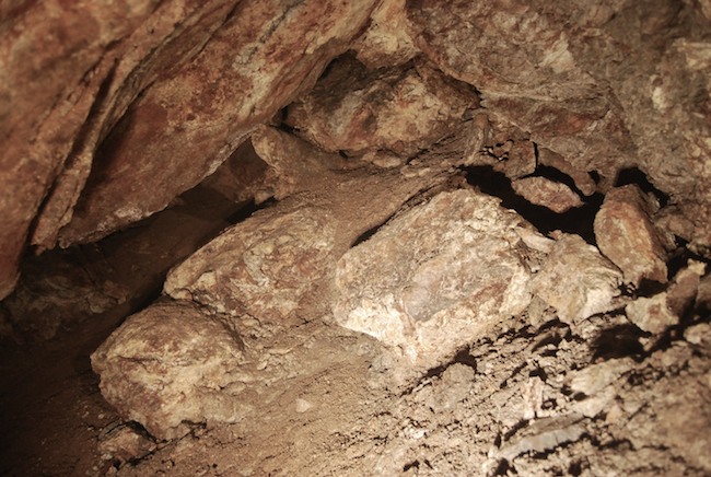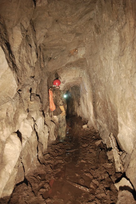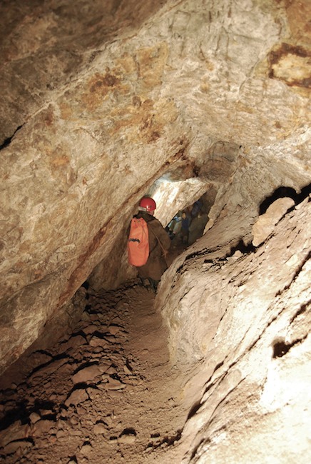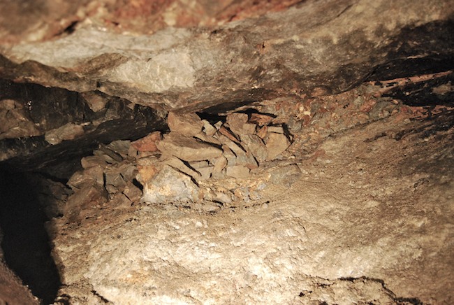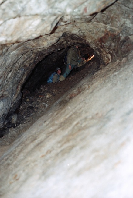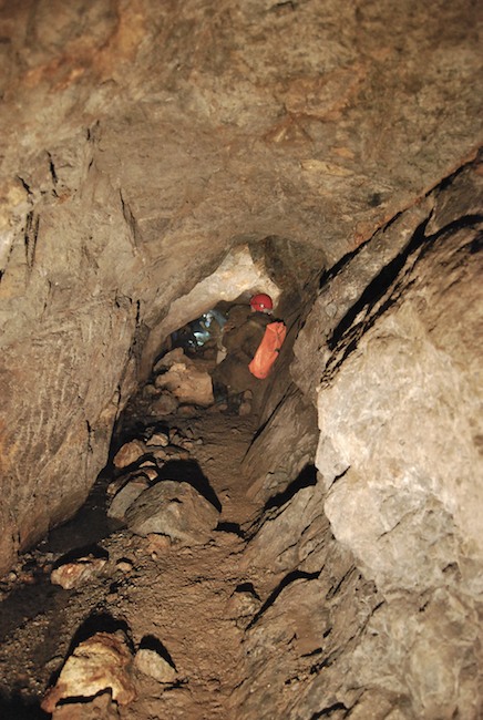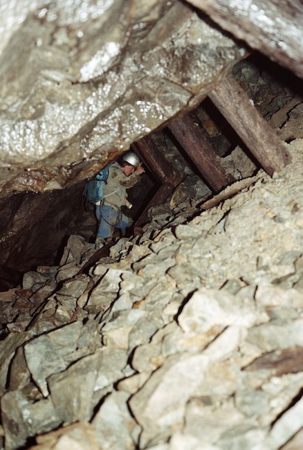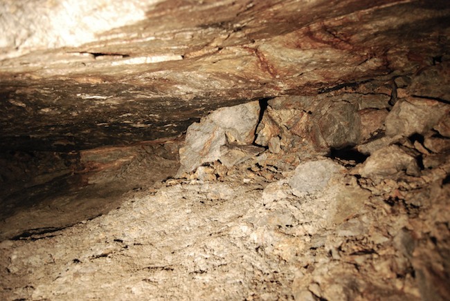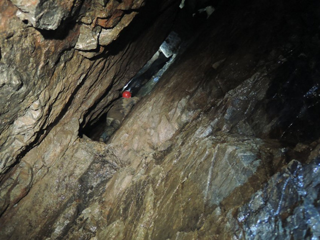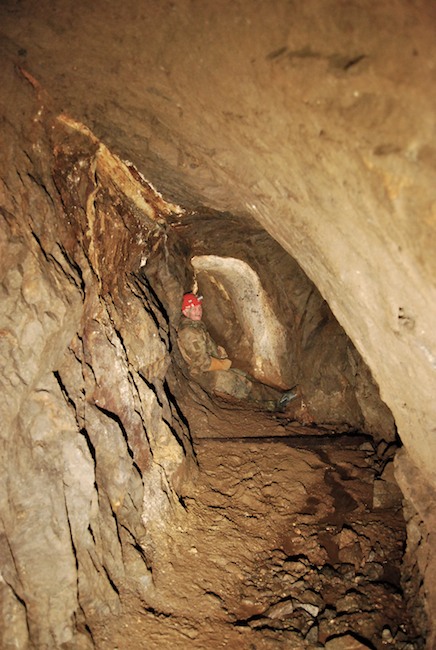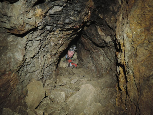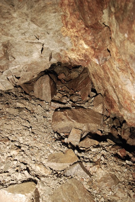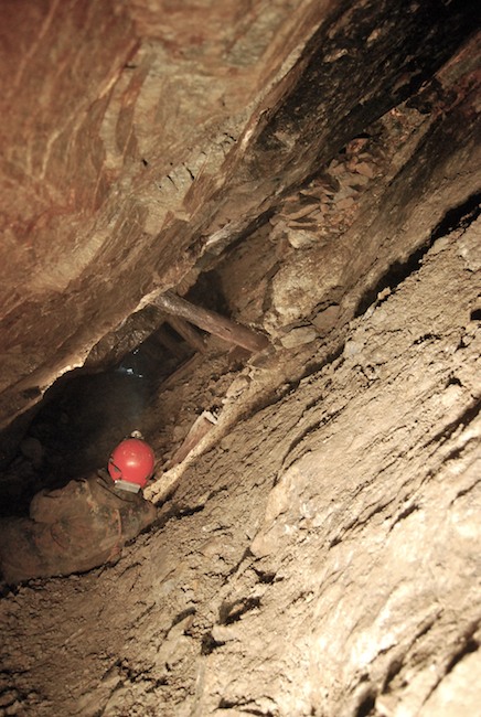 ![]() Die Masse in den Abbauen ist größtenteils verrollt und verkeilt und kaum versintert... Foto: M. Poller