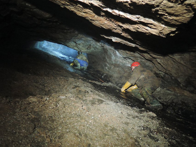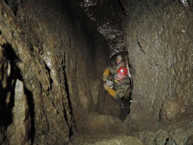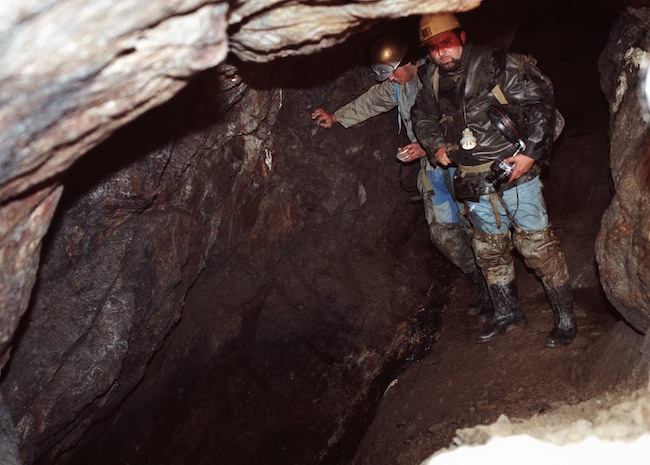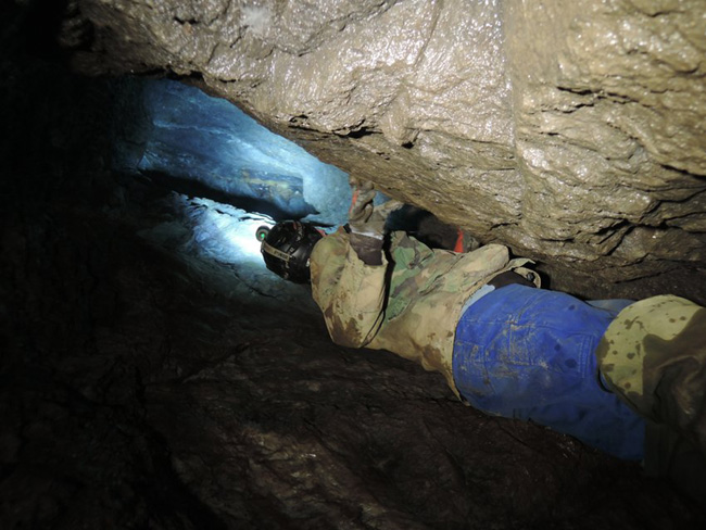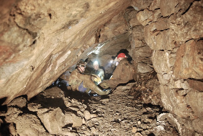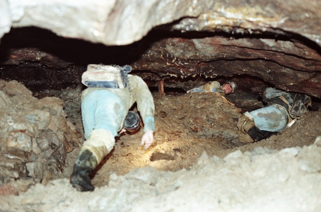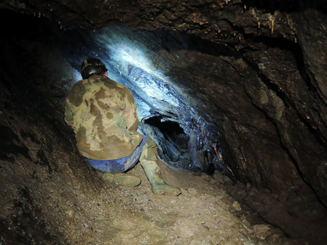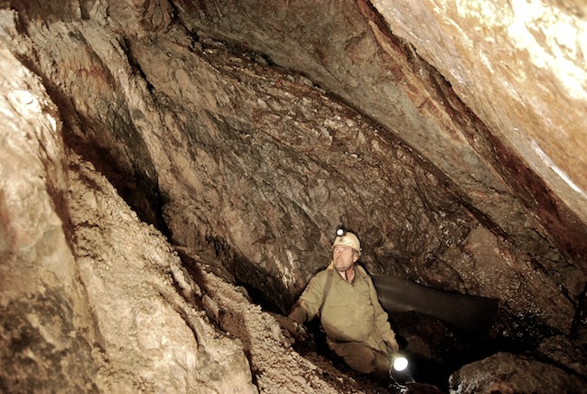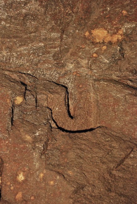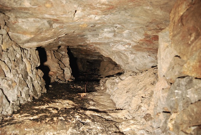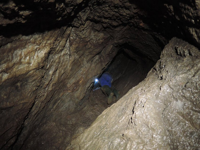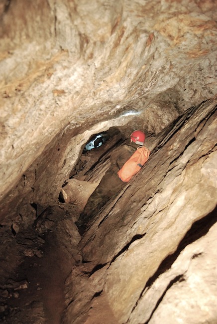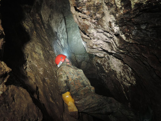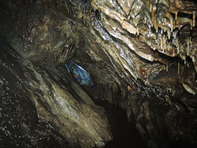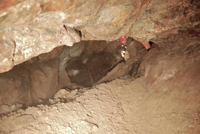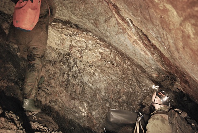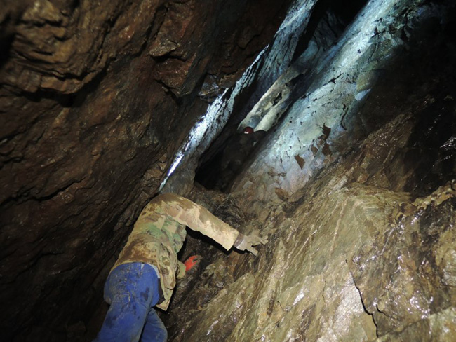 ![]() Die Masse in den Abbauen ist größtenteils verrollt und verkeilt und kaum versintert... Foto: M. Poller