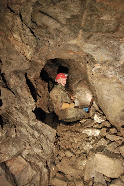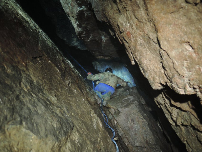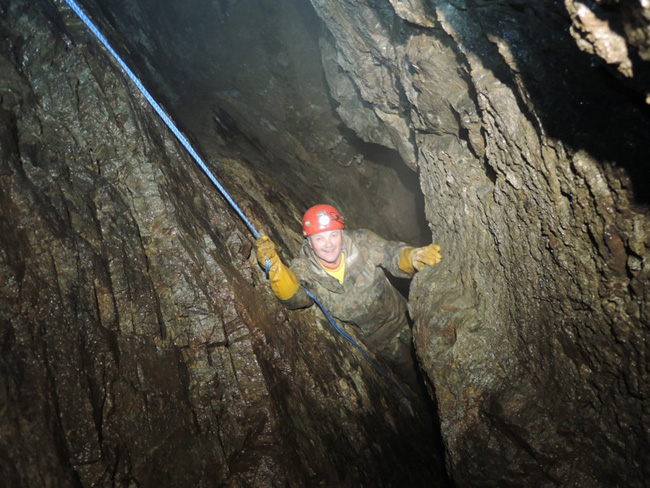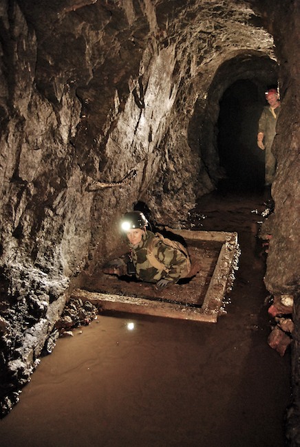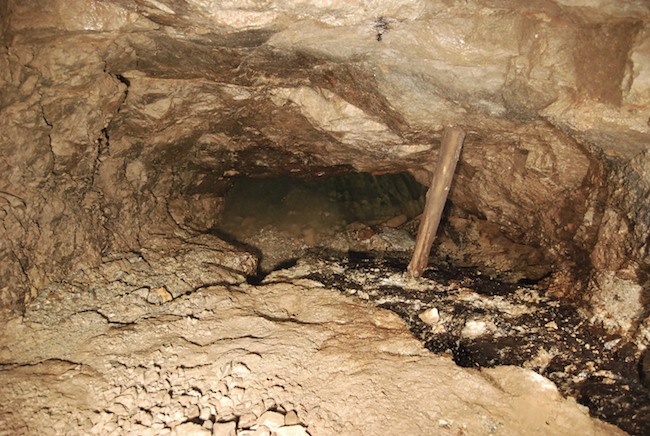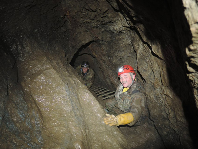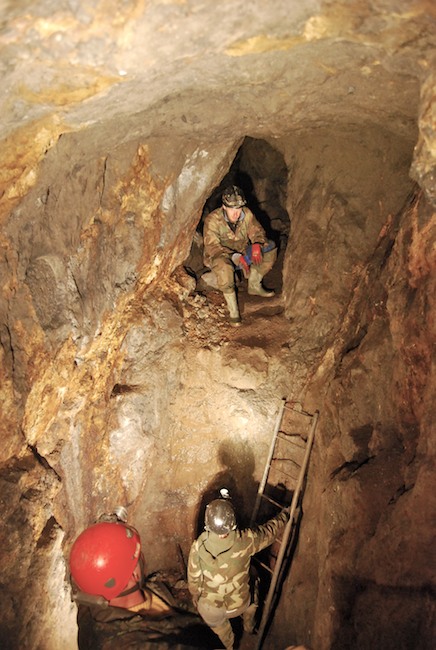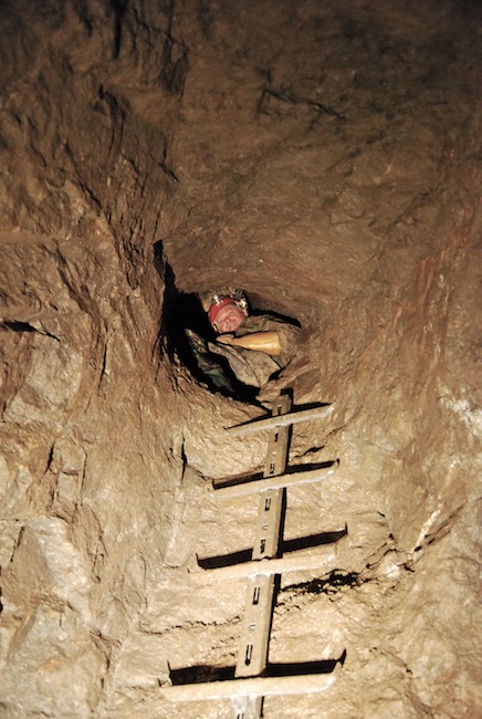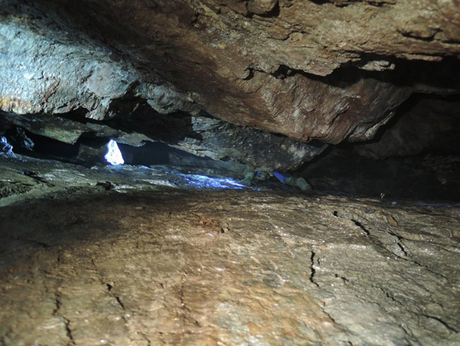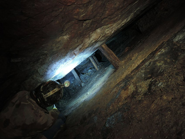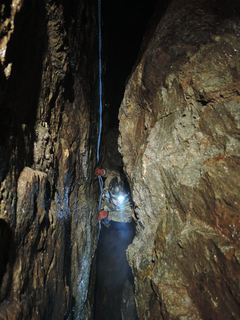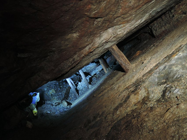 ![]() Angekommen an einem Blindschacht, der uns in darüber liegende Abbaue führt. Foto: M. Poller