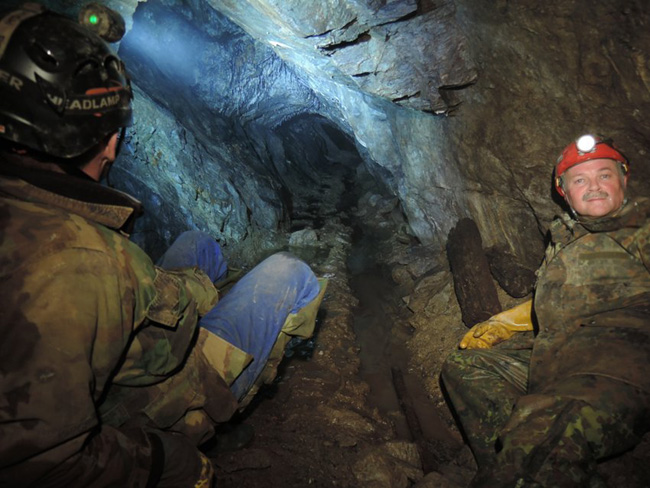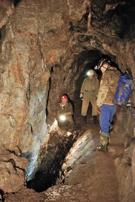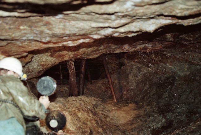 ![]() So wie die Befahrer der 1990er Jahre haben sich auch die „Alten“ bei der Wiederaufnahme des Berggebäudes umgeschaut und die Gesenke auf Resterz untersucht. Foto: J. Piller, Sammlung G. Voigt
