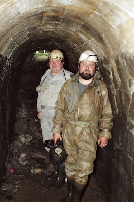 ![]() Während die Befahrer in den frühen 1990er Jahren noch problemlos über das Mundloch der Rösche einfahren konnten – inzwischen mit Beton „gesichert“ – muß man heute einige Umwege in Kauf nehmen, um dorthin zu gelangen. Foto: J. Piller, Sammlung G. Voigt