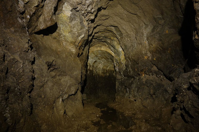 ![]() Der vordere Bereich des Stollns ist durch den neuzeitlichen Bergbau geprägt…