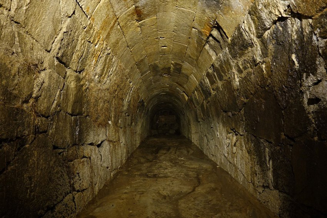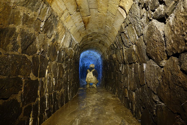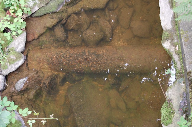 ![]() Kurz vor dem Mundloch ist die Rösche dann in Mauerung gesetzt …. Foto: M. Poller