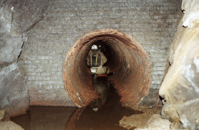 ![]() Je näher man dem Mundloch kommt, umso mehr sammelt sich Tropfwasser an.