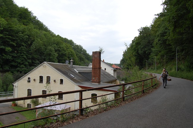 ![]() Blick hinauf zum Wasseraufschlag der Kehrradstube.