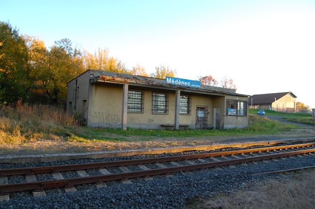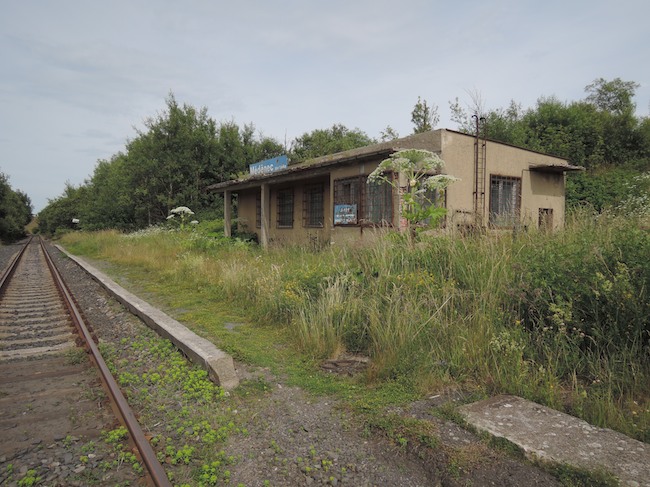 ![]() Der Haltepunkt des Bergwerks. Hier fahren zwar noch Züge, halten aber nicht mehr an dieser Station – warum auch, ist eh alles „tot“. Foto: Denise Oehme & Mario Poller |