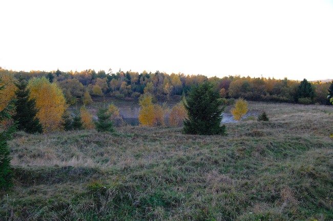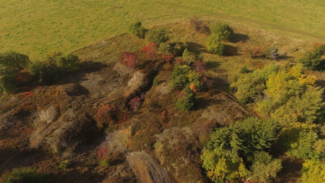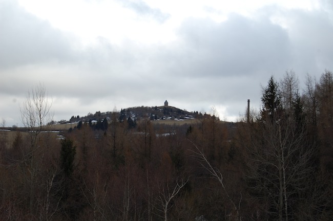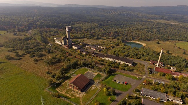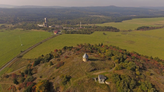 ![]() Der Blick über das Schachtgelände zurück zum Kupferhübel / Mednik. Foto: Martin Planitzer & Diana Lichtenthal |